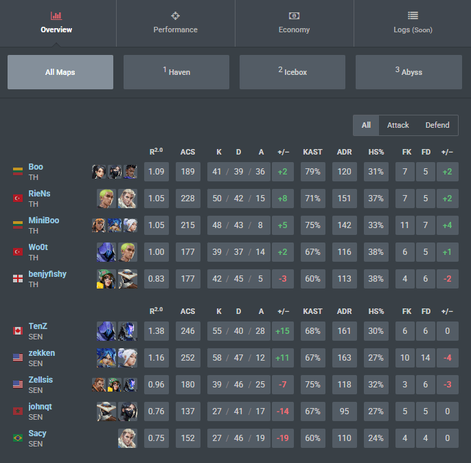 Despite losing the series, Zekken and TenZ topped the scoreboard with 58 and 55 frags across the three series. Despite dropping these kills, it seemed that Sacy and johnqt on Sentinels couldn’t match the firepower and ultimatley, Team Heretics took top spot with a 8-13 Haven, 13-9 Icebox and a 13-7 Abyss sending them into the next series.