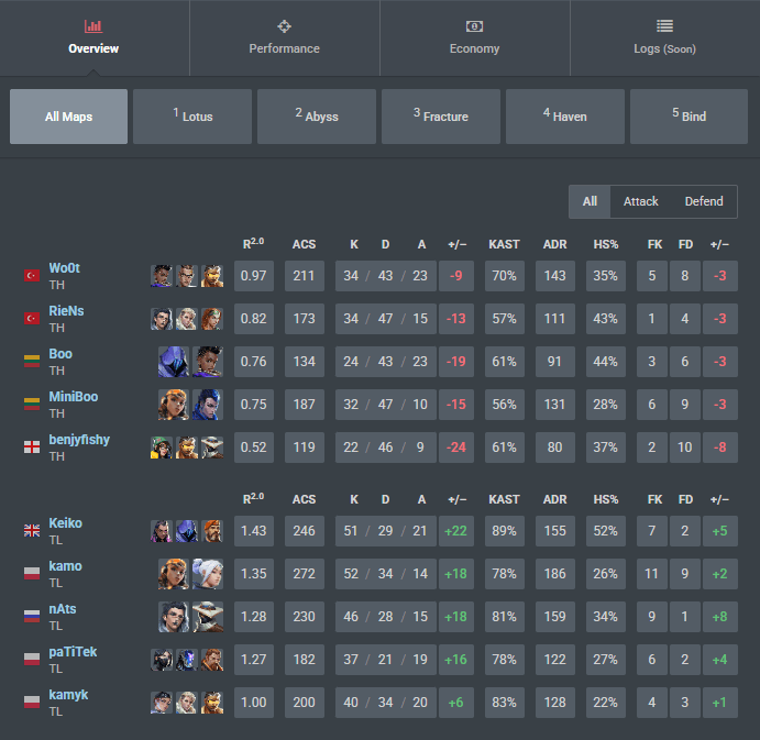 Team Liquids kamo took the top spot on the leaderboard for fragging out, whilst Keiko kept his performance to the highest level only 1 kill behind him on the flex/controller role.