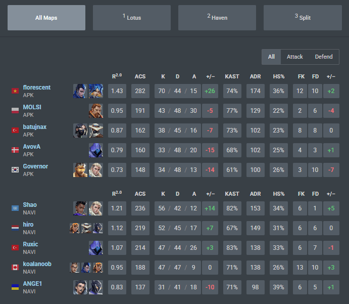 To no surprise of many, florescent topped the leaderboard with a monster performance dropping 70 frags across the three maps with her team all going negative in KD, which sums up florescents time at Apeks at the moment.