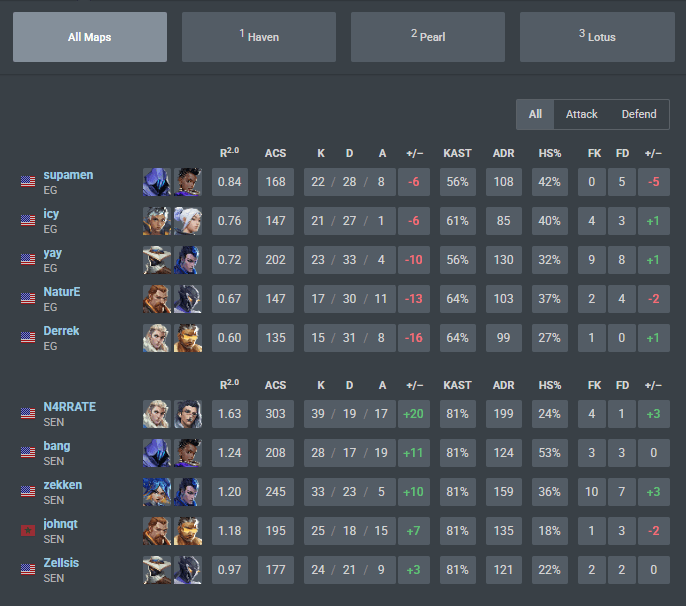 On the losing side, no one shined particularly for EG, as they couldnt gather together more than 10 rounds in total, showing utter domination from Sentinels after their poor performance against KRU last week.