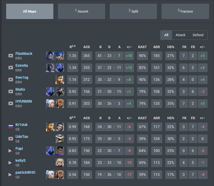 Flashback topped the leaderboard with 41 frags across the two maps on his new role of secondary Duelist. DRX, since coming back from Masters Bangkok, they are leaning into the double duelist which was made popular from T1, the Bangkok winners.