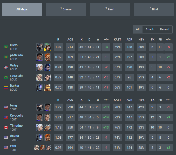 Everything shifted on Pearl. From the first few rounds, 100 Thieves imposed a completely different tempo, claiming space early and denying LOUD the freedom they enjoyed on Breeze. Defensive holds were disciplined, rotations were sharp, and LOUD struggled to find openings without being immediately punished. The map quickly became one-sided, with 100 Thieves stringing together rounds and never allowing LOUD to build momentum, closing out Pearl emphatically 13–2.