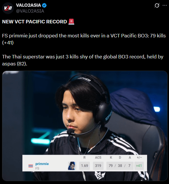 With questions on whether or not primmie would even make it into VCT for 2026, he made sure to be a player that will always be on the radar for players, with an incredible 79 frags, putting him in the top 4 kills ever in a BO3 series in Franchising.