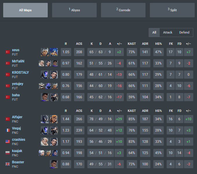 FNATIC claimed a 2–1 win over FUT Esports in their VCT EMEA Kickoff meeting, but the scoreline only tells part of the story. The series opened with FNATIC in full control, showing sharp coordination and confidence for the first map. They dictated the pace early and never allowed FUT to find their footing, closing out the opening map on Abyss in one-sided fashion and setting a strong tone with a 13-3 end.