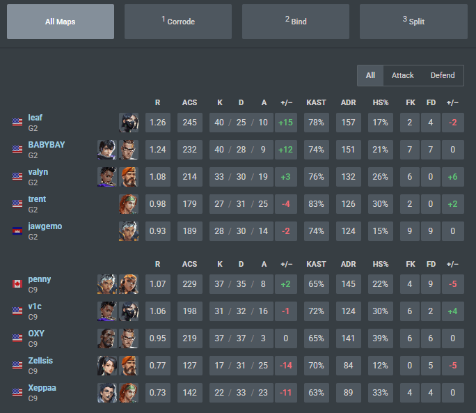 G2 dictated the pace after the break, repeatedly finding openings through disciplined defaults and sharp reads on Cloud9’s setups. Their post-plant retakes and trading were particularly effective, denying C9 the chance to build momentum. While Cloud9 fought to stay alive, G2 consistently shut down comeback attempts and maintained economic control.