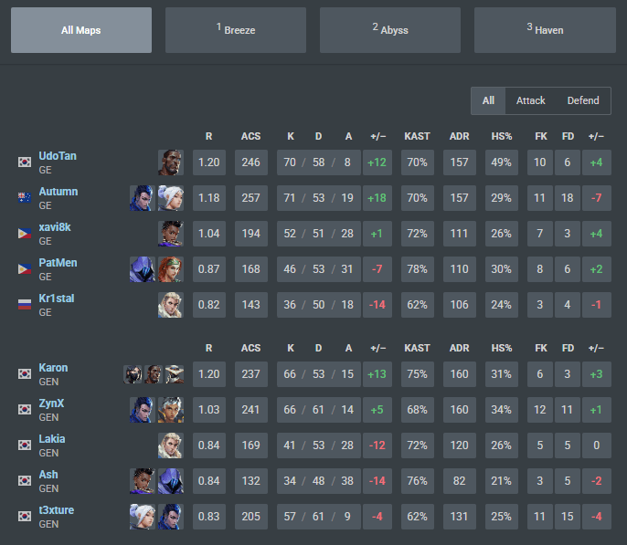 Facing elimination pressure, Global Esports responded with a much more structured approach on Abyss. Their defensive half was particularly impressive, shutting down Gen.G’s early-round aggression with proactive utility and tight site anchoring against a double duelist composition.