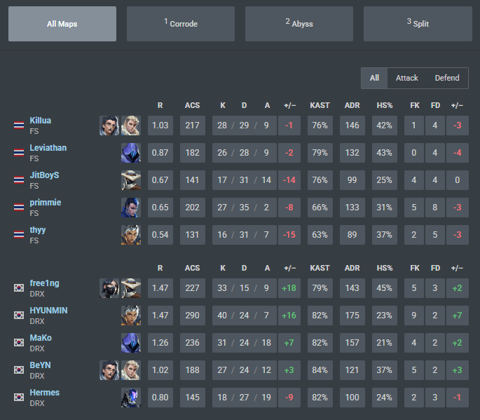 The momentum carried into the second map, where FULL SENSE showed more resistance and managed to keep the scoreline closer, but DRX’s discipline in clutch situations and post-plant scenarios ensured they remained in control when it mattered most, taking Abyss 13-9.