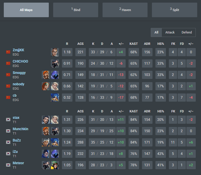Map 1 of the series went to Bind, where Autumn, Former T1 head coach, opted for cb to be the primary Duelist and ZmjjKK to move to Chamber, allowing him to utilise his Operator skill which he has showcased at former international tournaments.